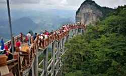 行程第四天,乘坐世界上最长的观光索道游览了天门山国家森林公园、天门洞、玻璃栈道、鬼谷栈道等景点,下午赴凤凰古城。